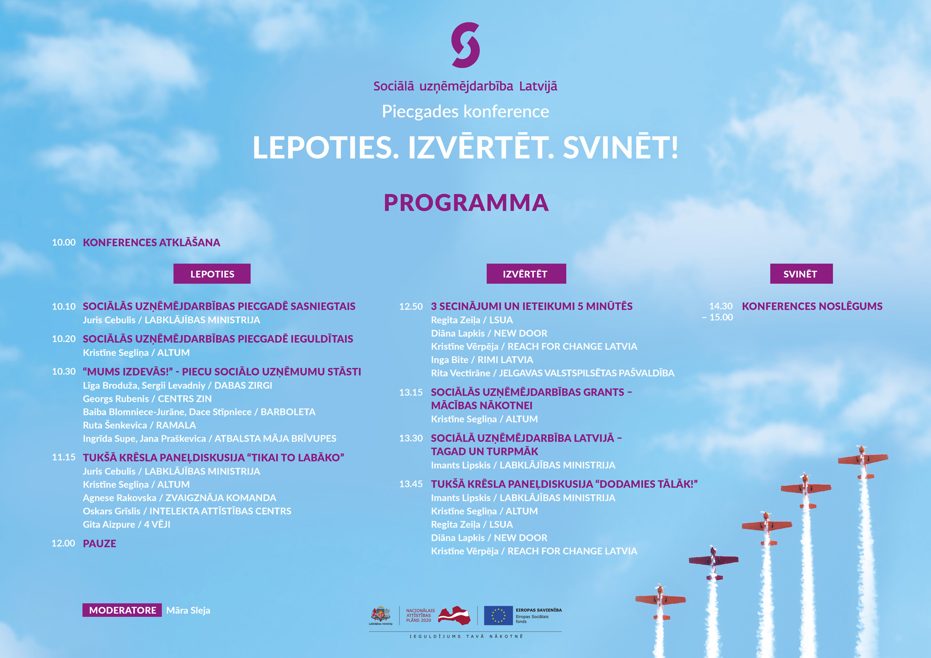 Savukārt 12. oktobrī tiešsaistē būs vērojama sociālās uzņēmējdarbības nozares piecgadei veltītā konference “Lepoties. Izvērtēt. Svinēt!”, kas ļaus atskatīties un izvērtēt paveikto un kopīgās sarunās iezīmēt nozares tālāko attīstību.