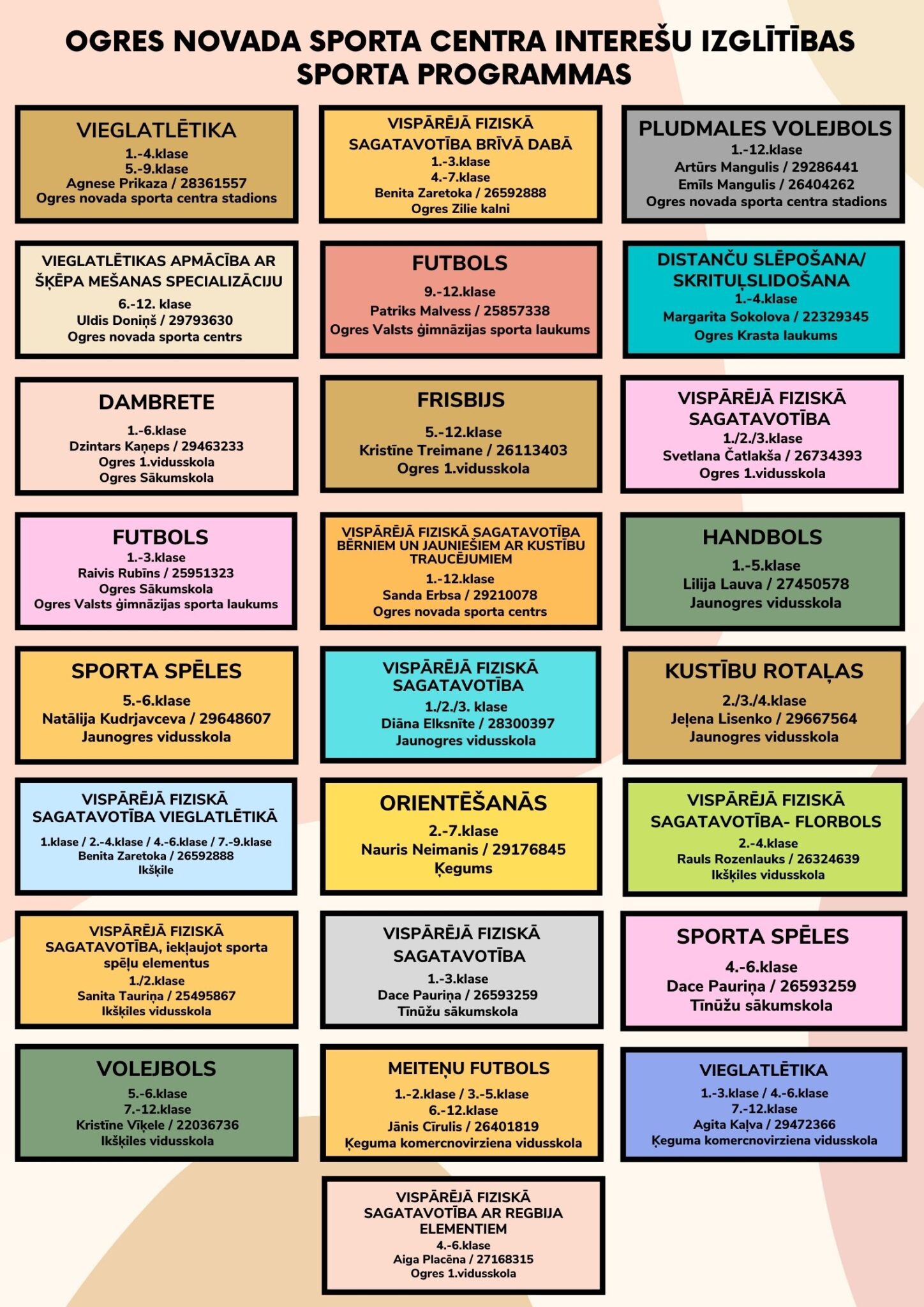 Aktualizētas Ogres novada sporta centra interešu izglītības sporta programmas.